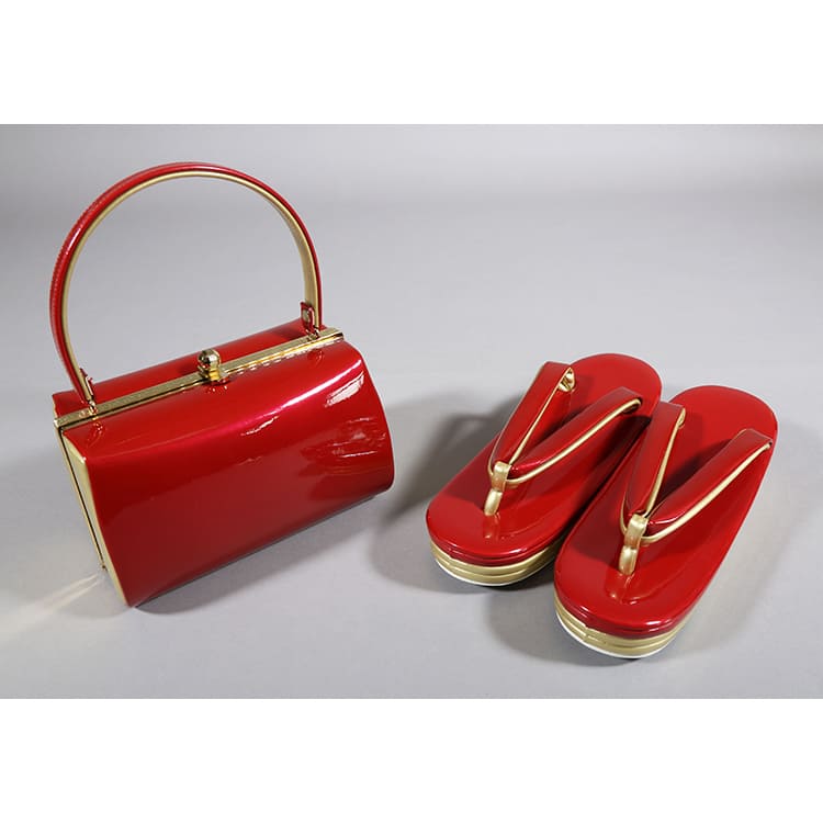 草履バッグ 赤と金