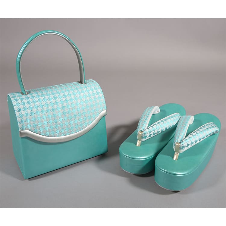 草履バッグ ターコイズブルー 千鳥格子
