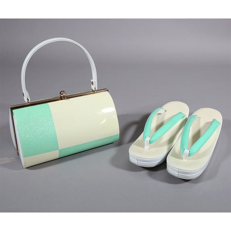 草履バック 緑とクリーム色