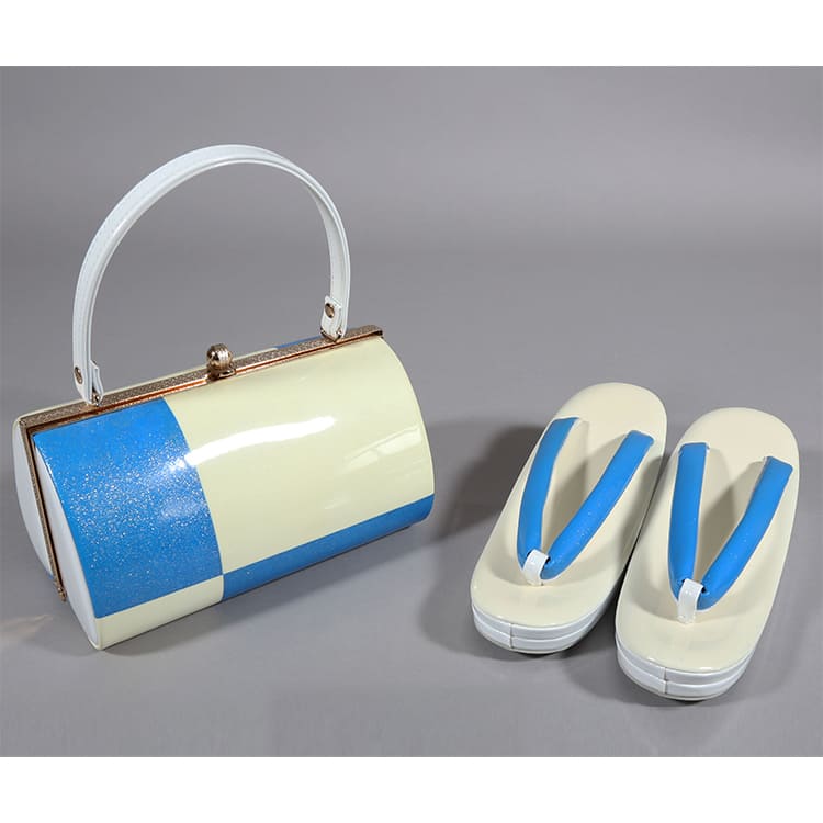 草履バック 青とクリーム色