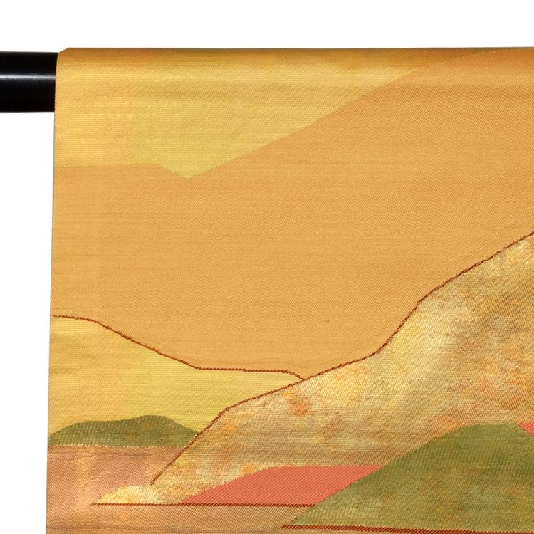 光沢のある生地ですのでゴールドのように見えて豪華な雰囲気です。リサイクル品の中では状態が良い方かと思いますので、着用も十分可能な状態です。
